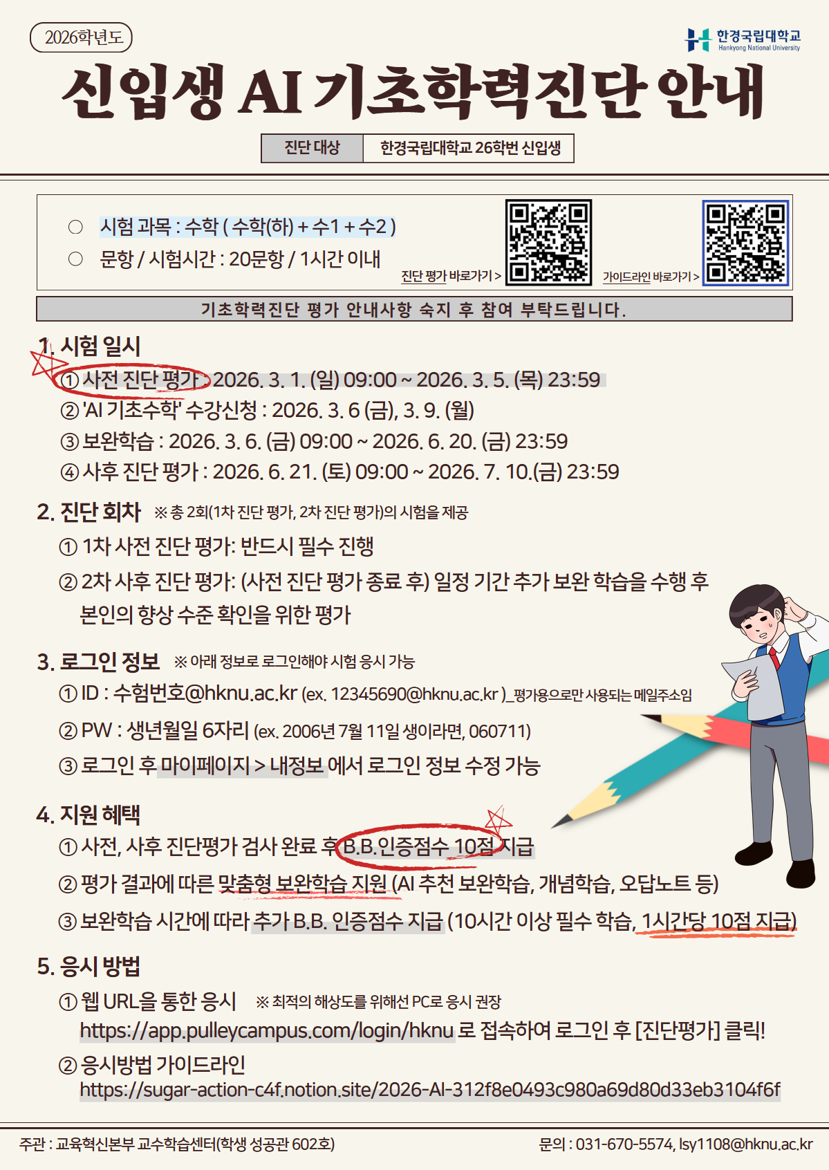 ① 사전 진단 평가 : 2026. 3. 1. (일) 09:00 ~ 2026. 3. 5. (목) 23:59