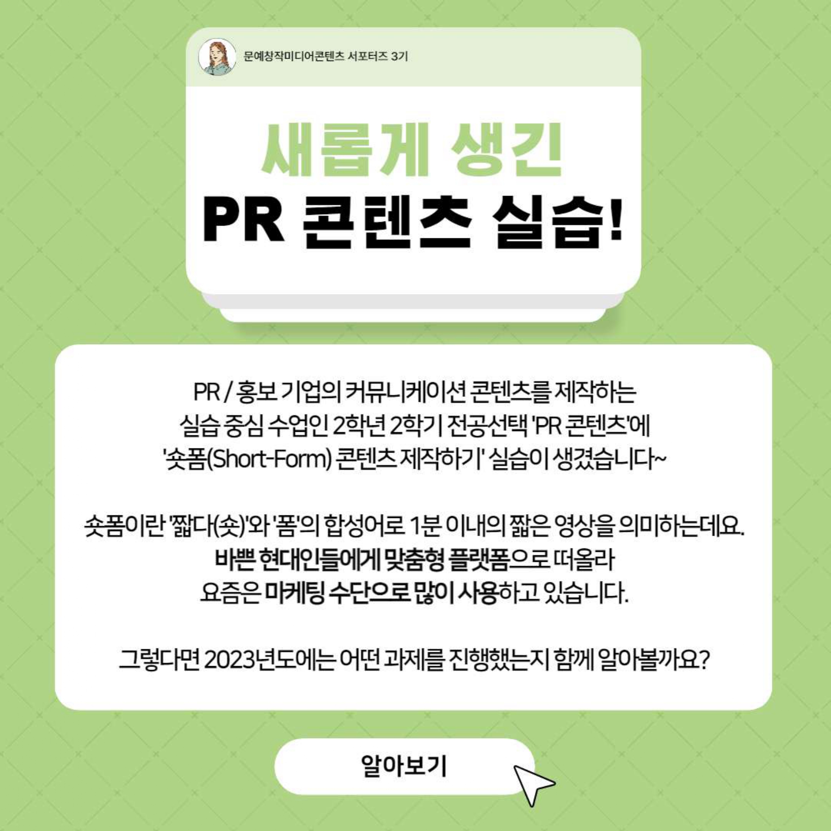 [2학년 2학기] PR콘텐츠 제작 | 새롭게 생긴 PR콘텐츠 실습!