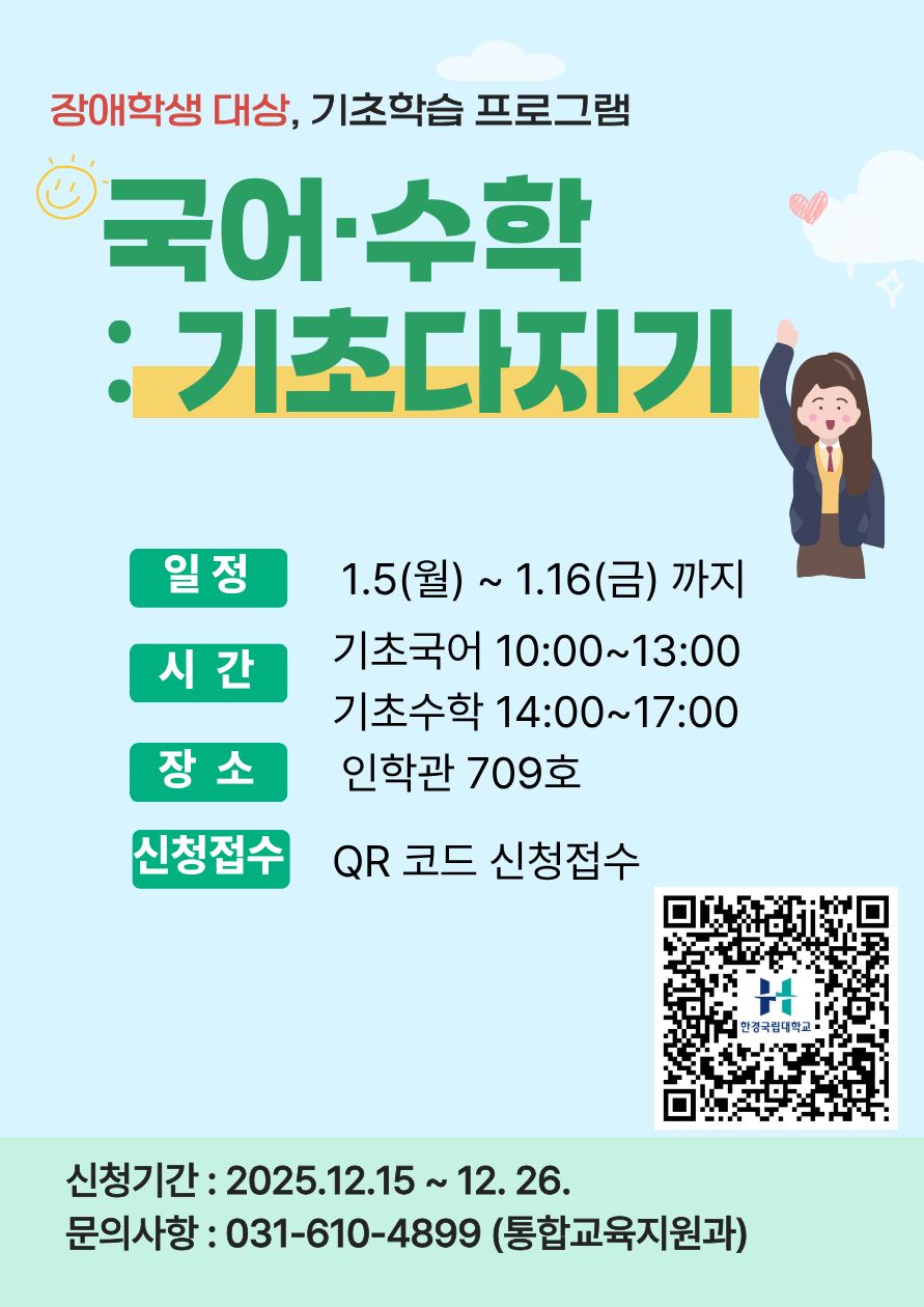 장애학생들을 대상으로 기초학습능력 향상 프로그램 (기초국어/기초수학) 프로그램 운영