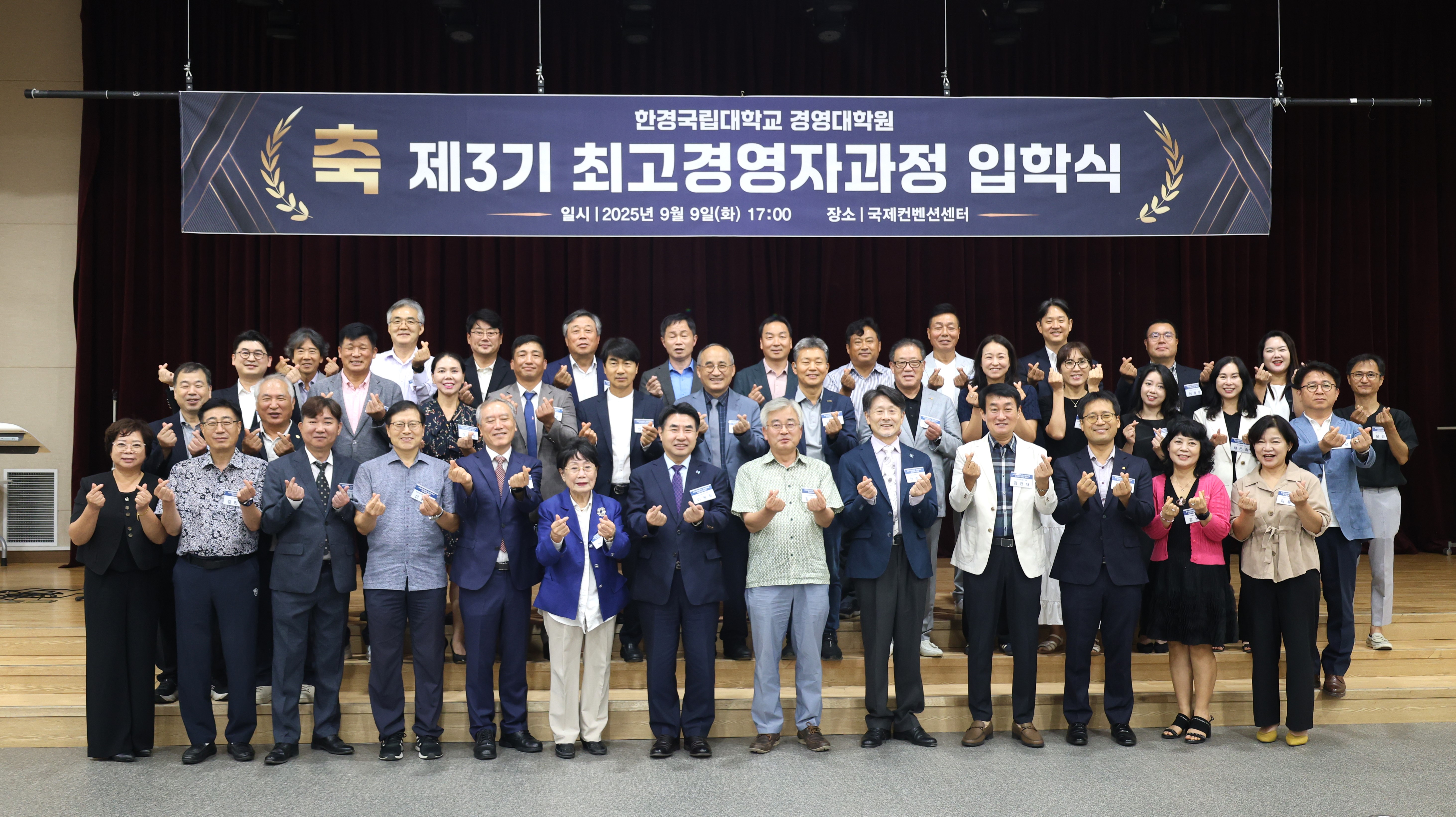 □ 한경국립대학교(총장 이원희) 경영대학원은 지난 9일, 기업 대표와 고위 임원들을 대상으로 한 제3기 최고경영자과정 입학식을 개최했다.