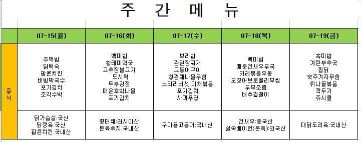 2024. 7. 15. ~ 2024. 7. 19. 주간식단표
