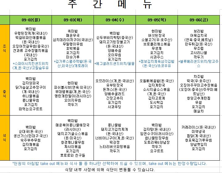 2026. 1. 5. ~ 2026. 1. 9. 주간식단표
