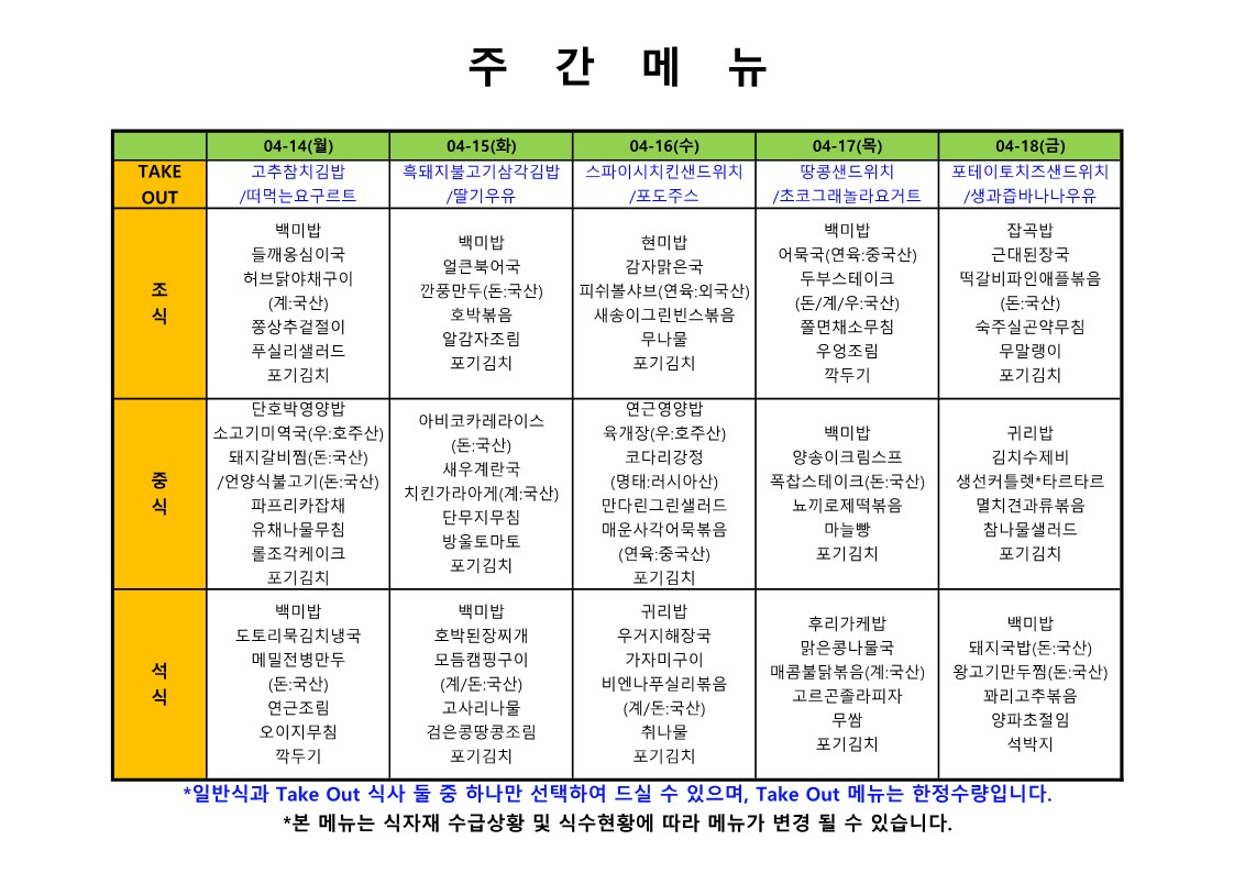 2024.4.1. ~ 2024. 4. 5. 주간식단표