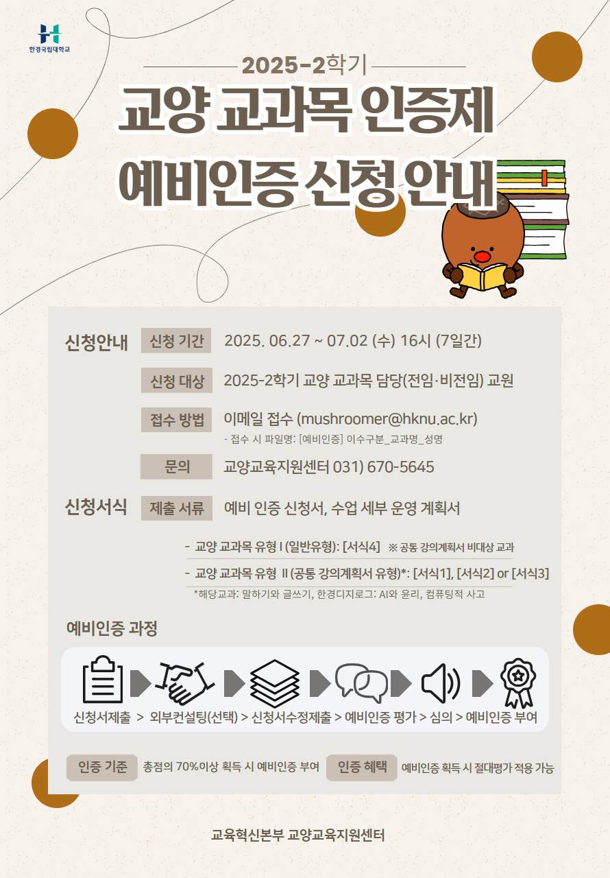 [교양교육지원센터] 2025-2학기 교양 교과목인증제 예비인증 신청 안내