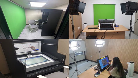 - 원격강의 콘텐츠 제작은 스튜디오(메인, 셀프)를 통하여 개발이 가능하며, 개발자의 요구에 따라 촬영 및 편집이 가능합니다.