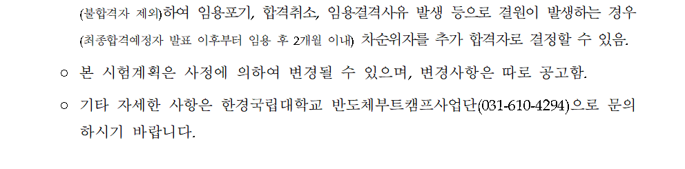 fnctId=bbs,fnctNo=350 단축 url 글번호 90165 [채용공고] 한경국립대학교 산학협력단 반도체 부트캠프사업단 계약직원 신규 채용 작성일 2025.11.13 수정일 2025.11.13 작성자 산학협력단 조회수 866 첨부파일 반도체 부트캠프사업단 기간제계약직 직원 신규 채용 공고문.hwp